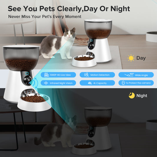 Tensea Automatic Cat/Dog Feeder with Camera, Auto Pet Feeder with Timer Programmable, 2.4G&5G WiFi, 2-Way Audio,,1080P HD Video with Night Vision